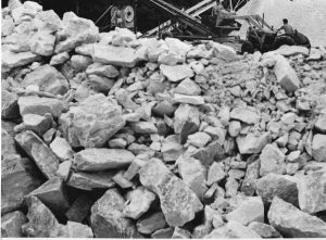 In 1968 the first rock was brought to the surface. The mining of the rock started at least a year before the factory was completed and a large stockpile of Gypsum rock (shown below) was created in preparation for production of Plasterboard in the factory.